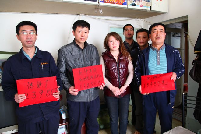 机修车间吊车工任秀花、炼铁厂维护车间加压工栗健群夫妻俩都在公司工作,今年一月,不幸降临到这个原本幸福的三口之家,他们刚刚20周岁的儿子经检查确诊患上了“白血病”,需要花费巨额的医药费进行治疗。任秀花所在的机修车间,得知这一情况后,工会小组提出了捐款倡议,大家纷纷伸出了援助之手,仅仅两天时间,机修车间、技术中心、机动处共捐款19850元。轧钢厂以及栗健群所在的炼铁厂的职工也自发的开始了捐款活动,炼铁厂捐款23980元,轧钢厂捐款18455元,仅仅不到一周的时间,共捐款62285元。