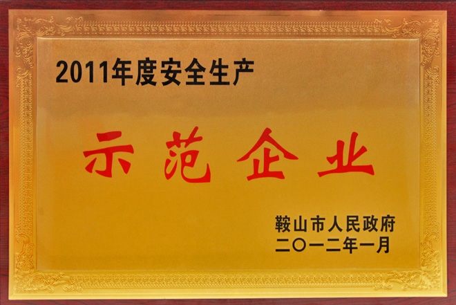 公司被鞍山市政府授予“2011年度安全生产示范企业”
