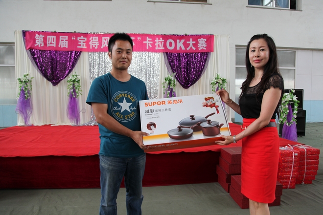 7月13日早8点,由公司团委、公司工会联合举办的第四届“宝得风采杯”卡拉OK大赛在网球场拉开帷幕。