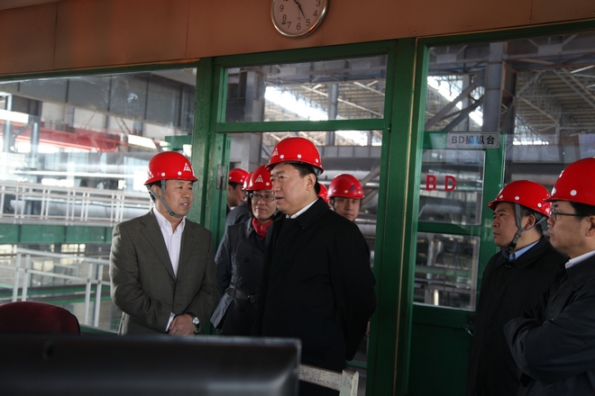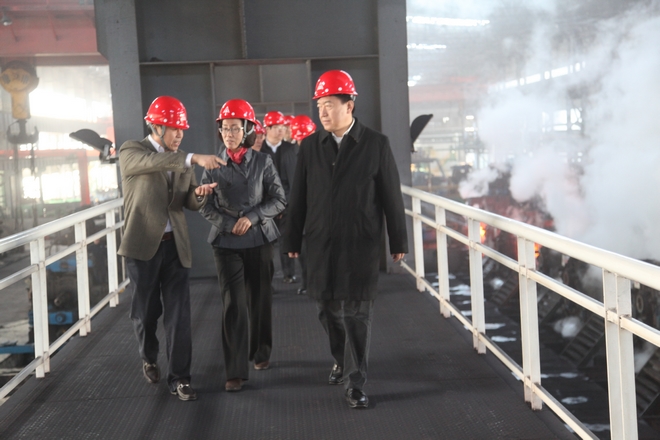 3月28日,辽宁省副省长刘强到公司视察,鞍山市代市长吴忠琼等相关领导陪同,总经理张铁汉汇报生产经营情况。