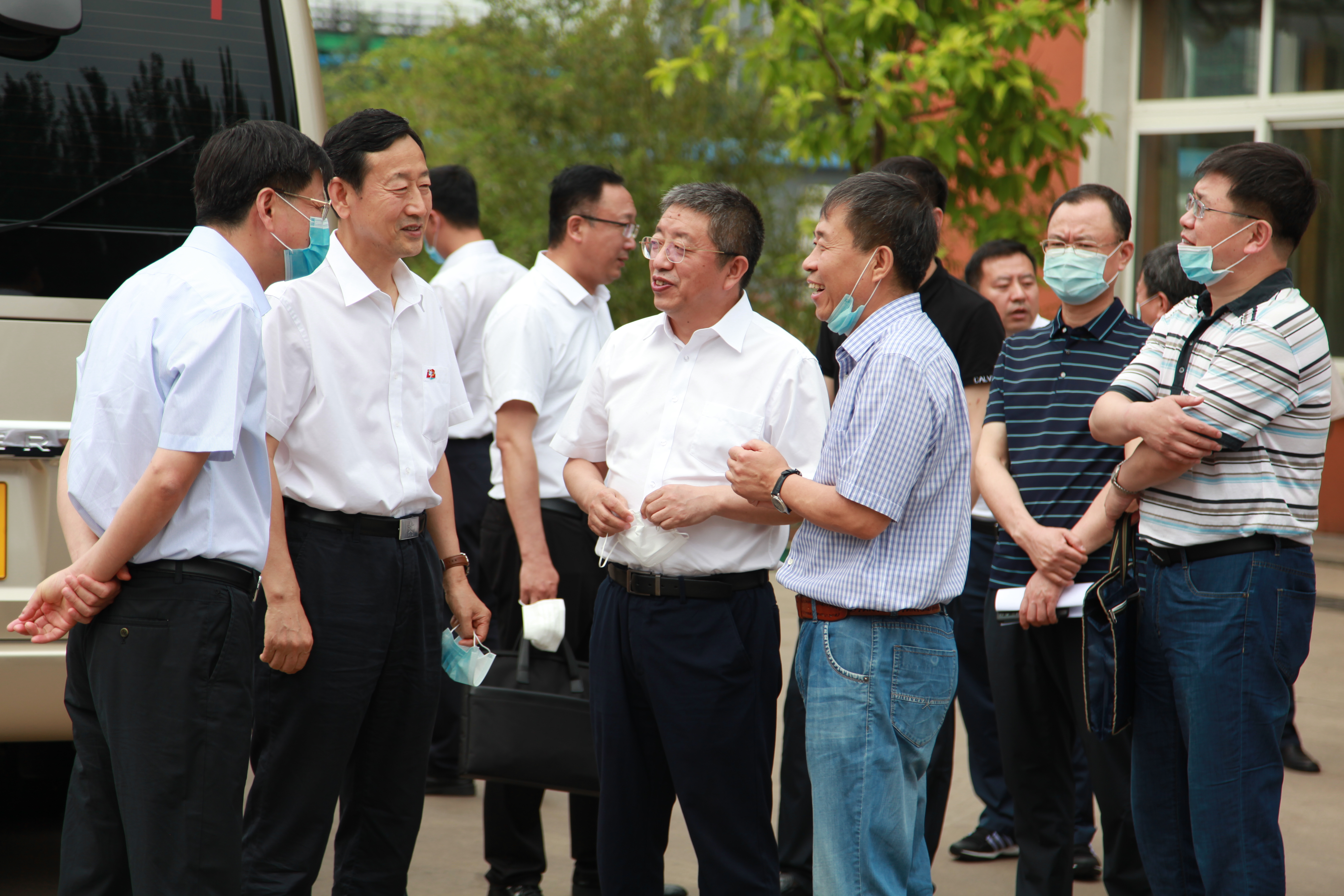 6月23日,辽宁省人大副主任张铁民(左二)、鞍山市市长余功斌(左一)等领导到公司调研企业复工复产情况,公司总经理张铁汉陪同调研。