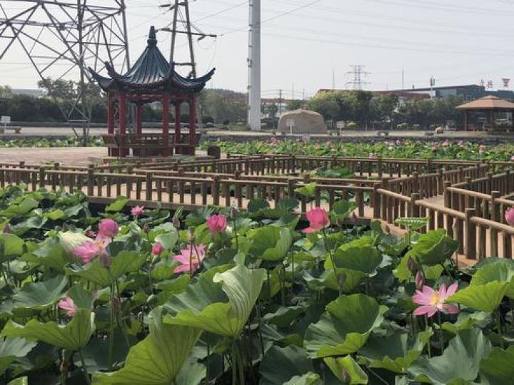 21日,在达道湾建设大道旁宝得钢铁有限公司东侧,一幅“接天莲叶无穷碧,映日荷花别样红”的美丽画卷呈现在眼前。一片荷花池,在清风中送来阵阵荷香。荷花池上,处处长廊、座座凉亭,红杆绿瓦间让景色更添余韵。这雕栏画栋,荷花掩映的美景身后,高耸的炼铁高炉,长长的输送管线,一钢一柔在宝得钢铁完美融合。
