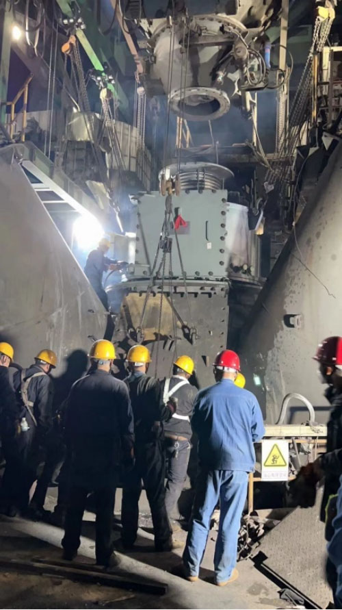 4月2日晚上紧张、忙碌的高炉气密箱检修现场